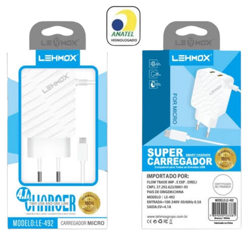 Com alta performance e resistência Anti Explosão, O carregador Lehmox é compatível com todas as entradas USB, podendo ter duas opções de portas USB + Cabo V8, Comprimento do Cabo 90cm e Entrada: 100-240V 50/60Hz 0.5A.