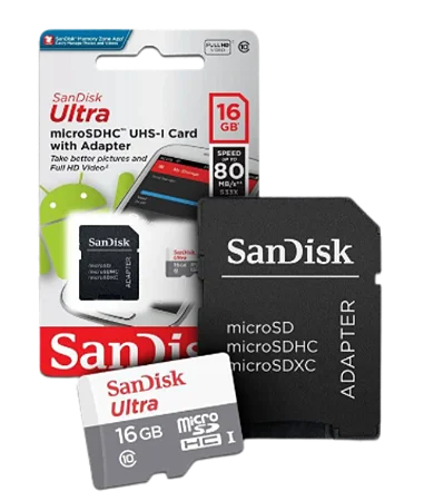 Com 4 opções de extenção, o car tão de memória Sandisk compor ta 16Gb, 32Gb, 64Gb e 128Gb